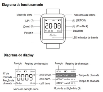 -Apresentações das chamadas com tempo ajustável de 1 a 180 segundos;